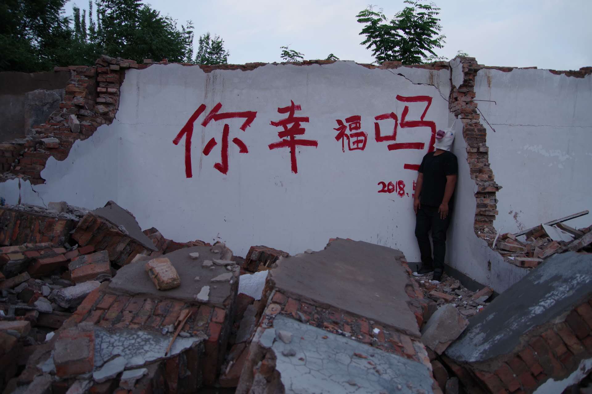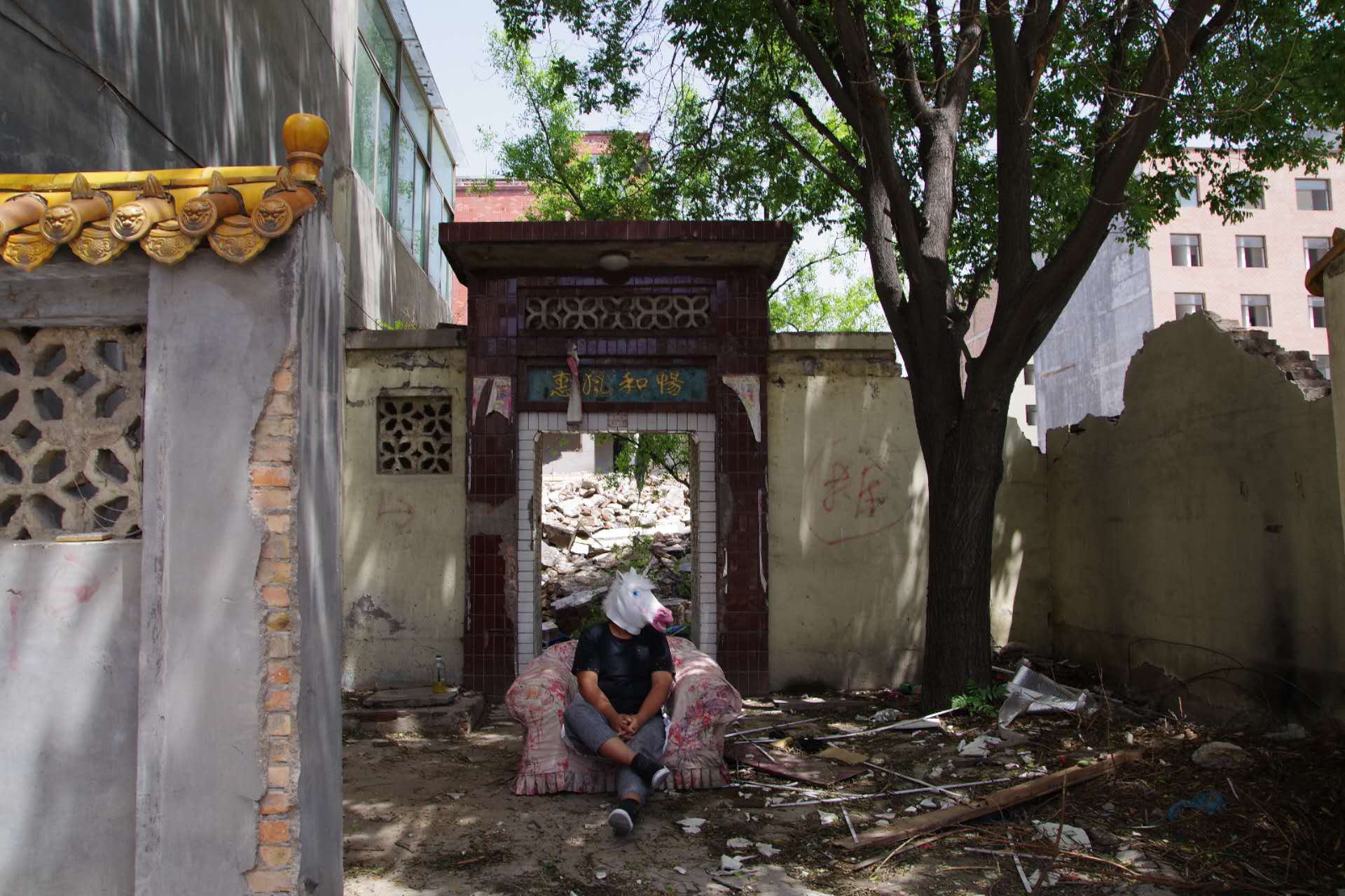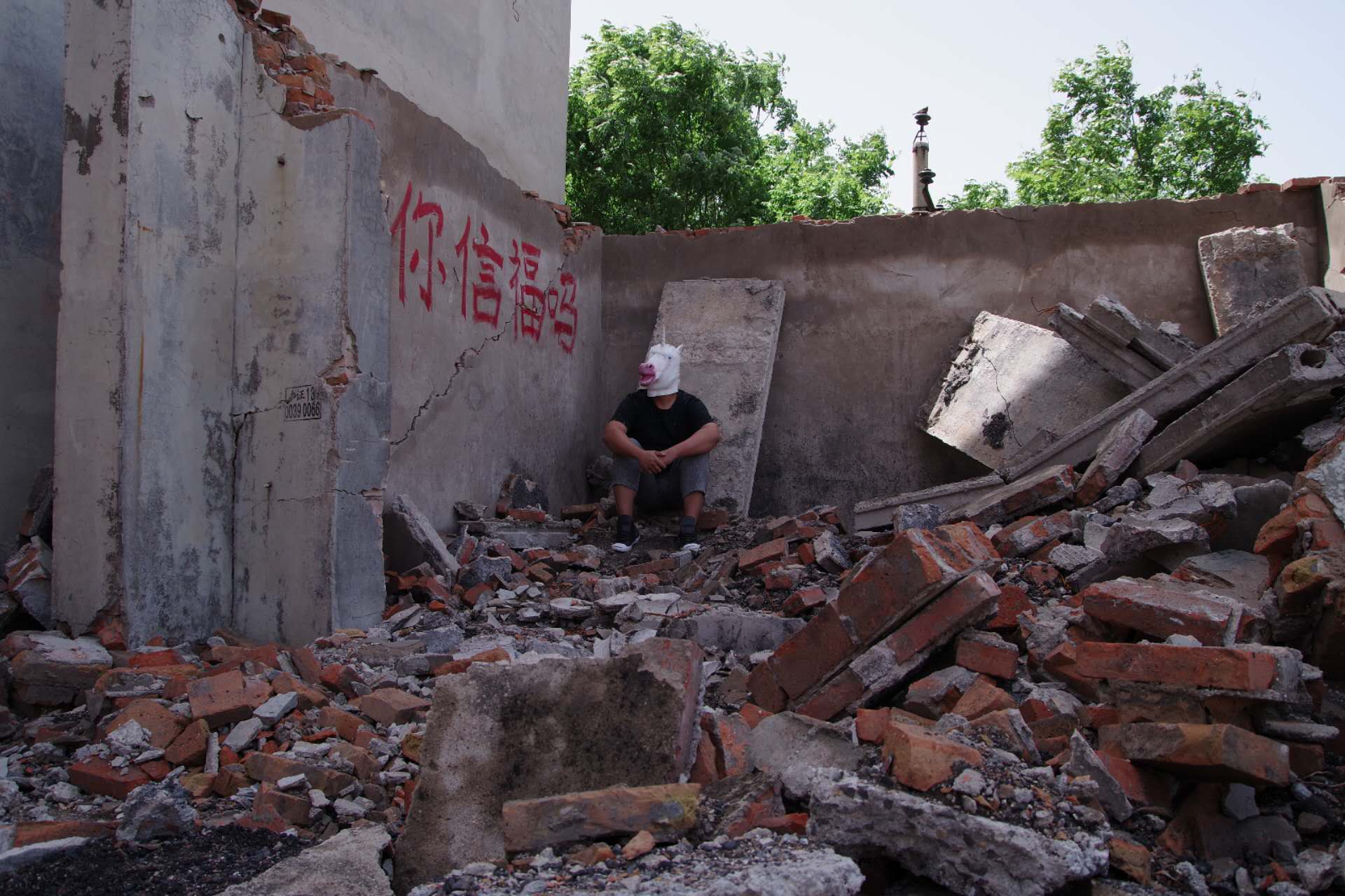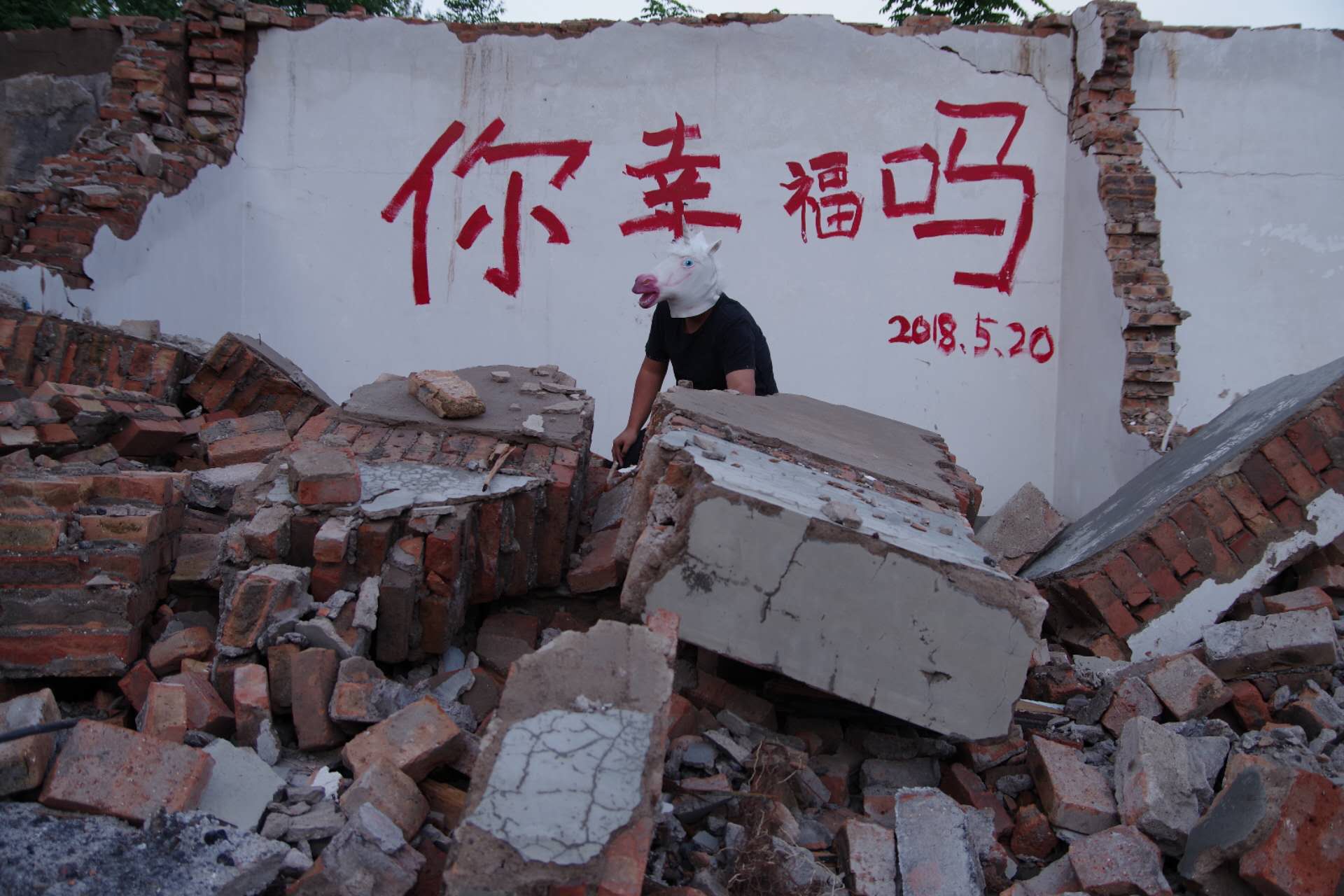 In this context of demolition, contradictions were born alongside me. I stood amidst the crowds, face to face with “enemies,” trying to position myself as an observer, a recorder. Yet, I was not a qualified recorder. I failed to fully capture the depth of suffering or the struggles of resistance, nor could I document freedom or courage in their entirety. Symbols and fragments of the past lingered in my memory: the bright red “Fu” character caught between the fissures of a broken windowpane, the impassioned shouts beneath a crumbling wall, the unicorn on the childhood sofa where we played hide and seek, now echoing in the hopeful graffiti of a condemned building marked with a red demolition circle. And above all, the piercing question painted in bold red characters: “Are you happy?”